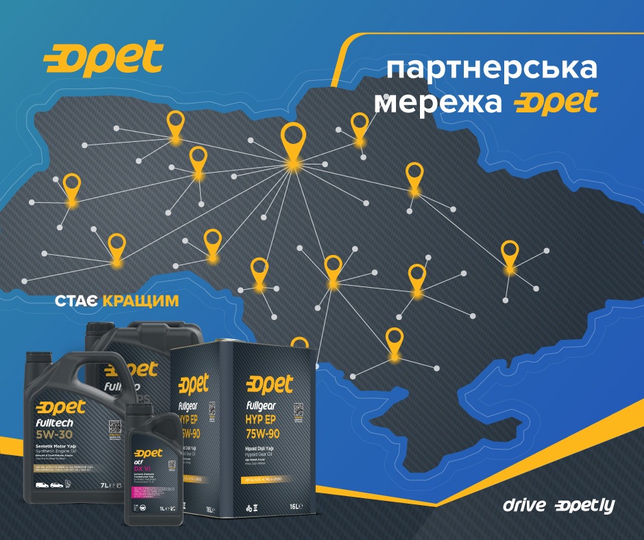 Офіційні дистриб’ютори Opet представляють з перших рук широкий асортимент мастильних матеріалів та сервісних продуктів виробництва Opet Fuchs Madeni Yağ San. Tic. A.Ş. найвищої якості. На території України продукцію бренду реалізують як компанії національного масштабу, так і регіональної та спеціалізованої діяльності. Наприклад експертні рішення Opet забезпечують профільні дистриб’ютори серед транспортних підприємств вантажних та пасажирських перевезень, видобувних та будівельних компаній, станцій технічного обслуговування (СТО) легкових та комерційних автомобілів, аграрних компаній та фермерських господарств тощо.