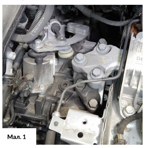 Перед тим, як від’єднувати верхню опору трансмісії та відкрутити останній болт кріплення корпусу, необхідно переконатись, що двигун надійно зафіксований. Трансмісія була відокремлена від двигуна та розміщена на підлозі для подальшої перевірки.