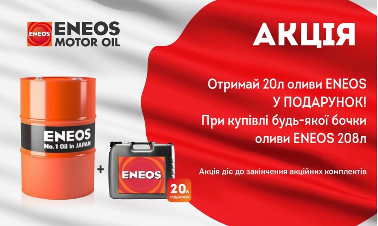 Отримай 20л оливи ENEOS у ПОДАРУНОК при купівлі будь-якої бочки оливи ENEOS 208л.