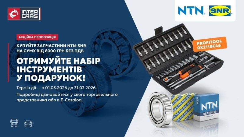 Купуйте запчастини NTN-SNR з асортименту Inter Cars Ukraine на суму від 8000 грн без ПДВ та отримуйте набір інструментів PROFITOOL 0X211BC4.
