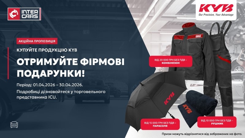 Купуйте деталі KYB з асортименту Inter Cars Ukraine та отримуйте фірмові подарунки залежно від обороту!