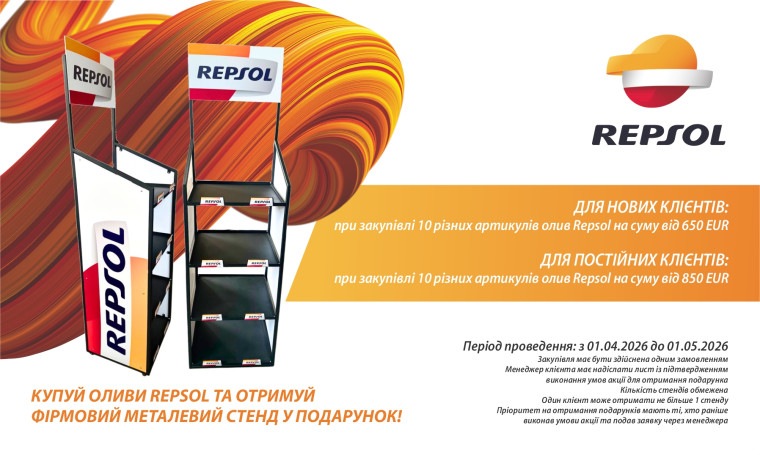 - при закупівлі 10 різних артикулів олив Repsol на суму від 850 EUR